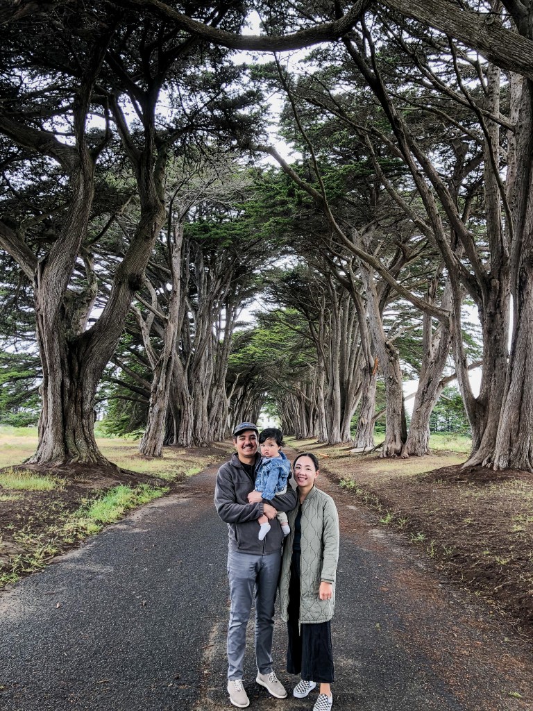Because of Memorial Day, RJ and I had the day off from work. We decided to adventure up North to see Point Reyes National Seashore. It was a pretty cloudy day so by the time we got there, it was a little chilly and misty. We stopped at the Cypress Tree Tunnel first and got to walk around. There was barely anyone there which allowed us to take some nice pictures as a family.