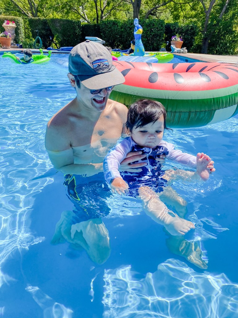We were invited to swim at my friend’s place in Mission Peak. I was excited because it would be Remy’s first time going into a pool. We got him a cute little swim outfit from Buy Buy Baby the day before and this adorable swim hat to match. At first he was a little afraid, holding on to me when we got into the pool, but when we put him in his floatation device, he seemed to relax a bit more. Once we left, our boy knocked out in the car on the way home. Super proud of my boy for this first experience and he handled it like a champ.